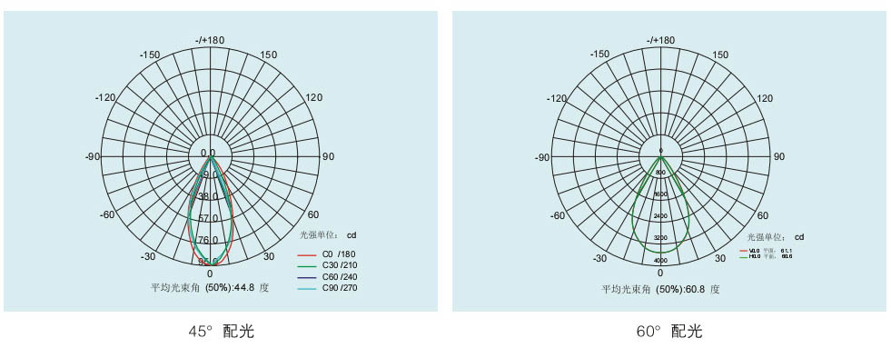 3、同步設(shè)計(jì)了45°、60°兩款透鏡,滿足專業(yè)配光,適應(yīng)不同場合。