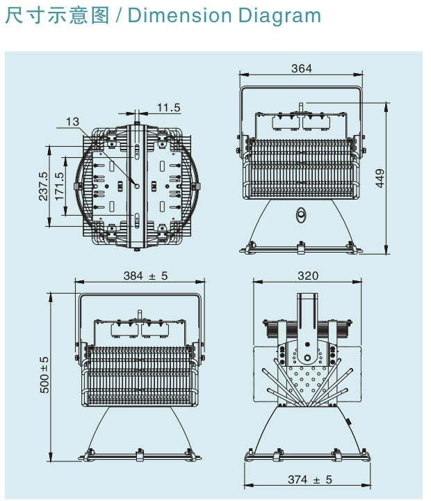 1、采用熱管鉚接鰭片組散熱技術(shù),迅速降低光源溫度、延長光源使用壽命;